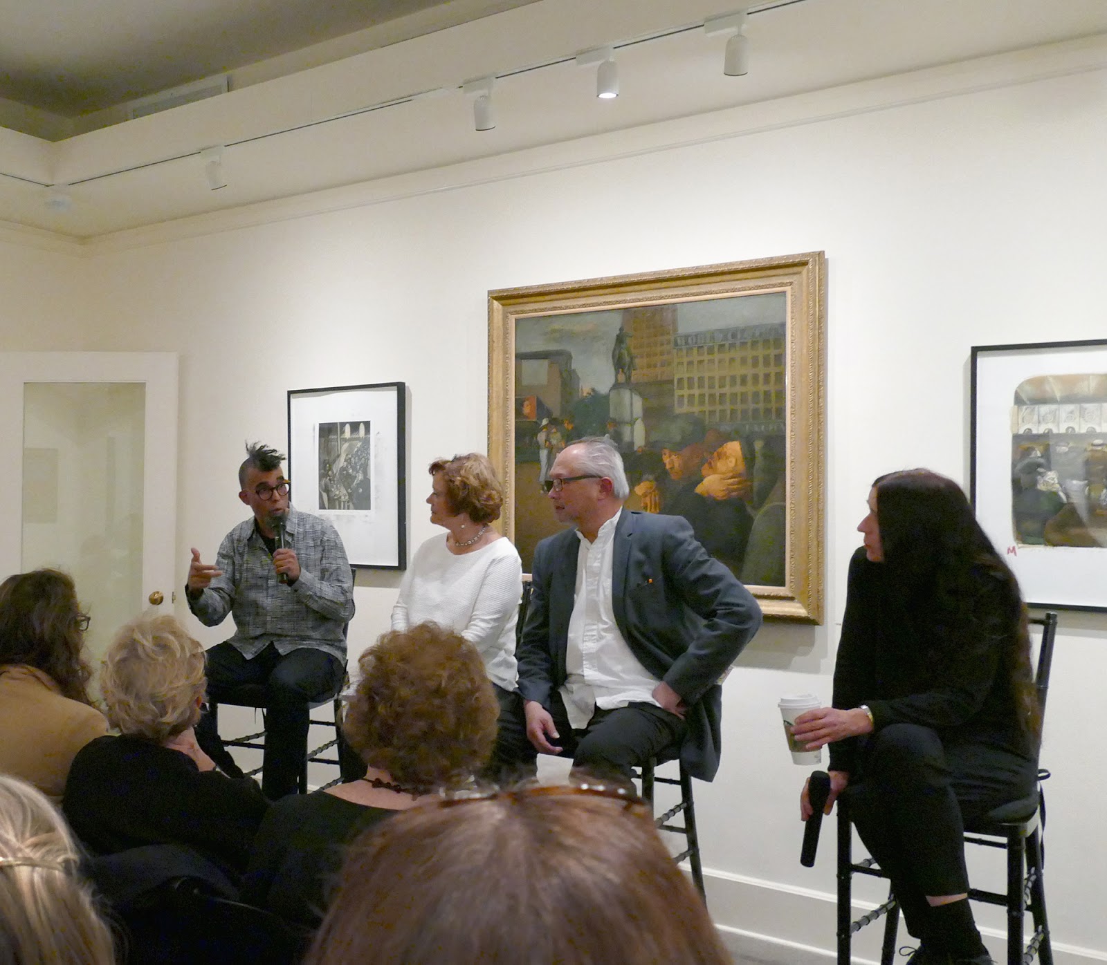 "Activist Artists Today" at The Galerie St. Etienne, January 18, 2017. Left to right: Dread Scott, commentator Amei Wallach, Mel Chin and Sue Coe. click on photo to enlarge